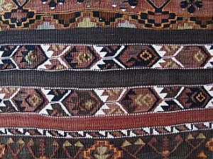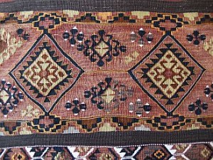 糸、織り、染めの三拍子が揃ったキリムを持ち嫁ぐ娘は、嫁ぎ先に福をもたらす良い嫁とかわいがられました。夫からの返礼の家畜の贈り物の数は、キリムの出来の良し悪しで決まったそうです。娘に持たせるキリムは、娘の実家の実力と心意気を物語っていました。