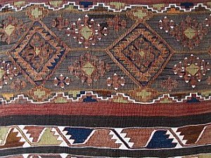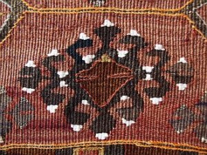織り手の祖母は、孫娘の幸せの笑顔、嫁ぎ先の人々の驚く顔、目にする人々の感嘆の声など、様々なことを想像しながら、末長く伝え継がれるキリム作りを楽しんだのです。祖母は卓越した技術を馳駆ししながら、部族に伝わるデザインを通して、珍しい色調や織りの具合などを、孫娘に教えているようです。