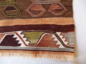 東トルコ・マラティアのキリムというと、色彩豊かな明るいキリムがイメージされます。山岳地帯にありながらも、豊富な水と強烈な太陽の恵みが豊かな植物や果物を育て、織り手の色彩感覚を鍛え続けた結果、生まれたキリムです。また、マラティアはクルド人の多い町です。